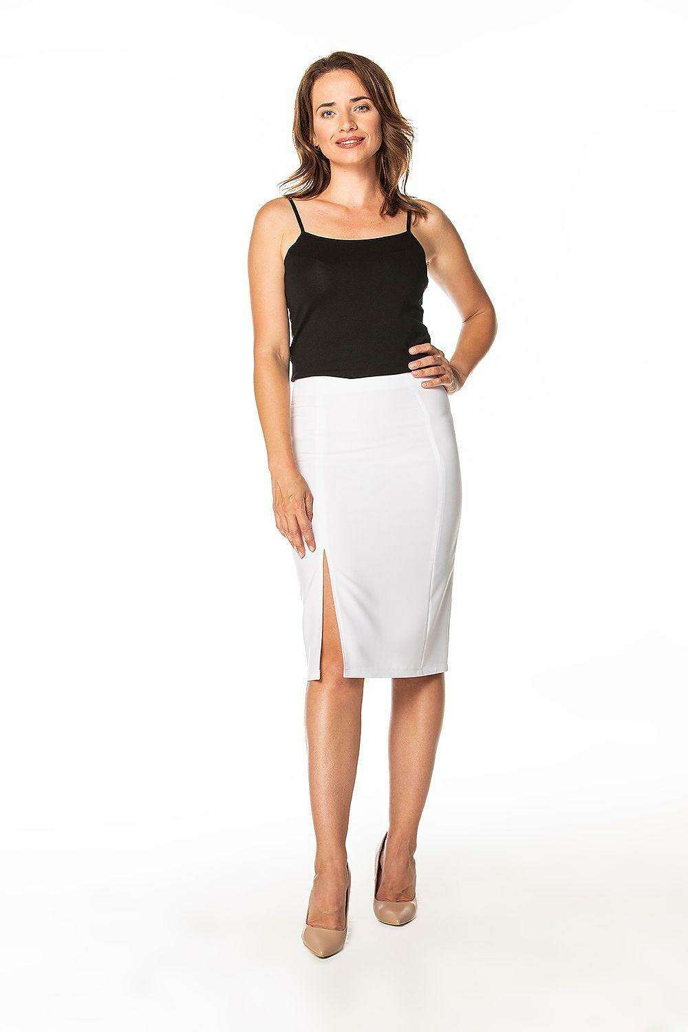 Sophisticated Side Slit Midi Pencil Skirt with Discreet Zipper Closure