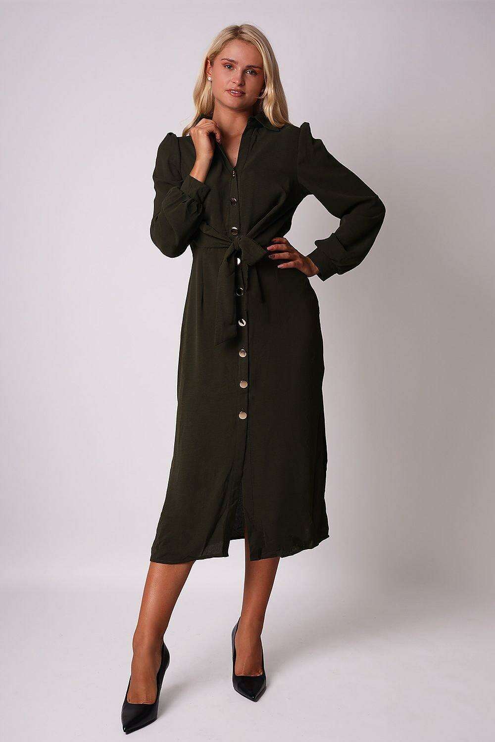 Sophisticated Tie-Front Midi Dress with Button-Up Detail by Ax Paris