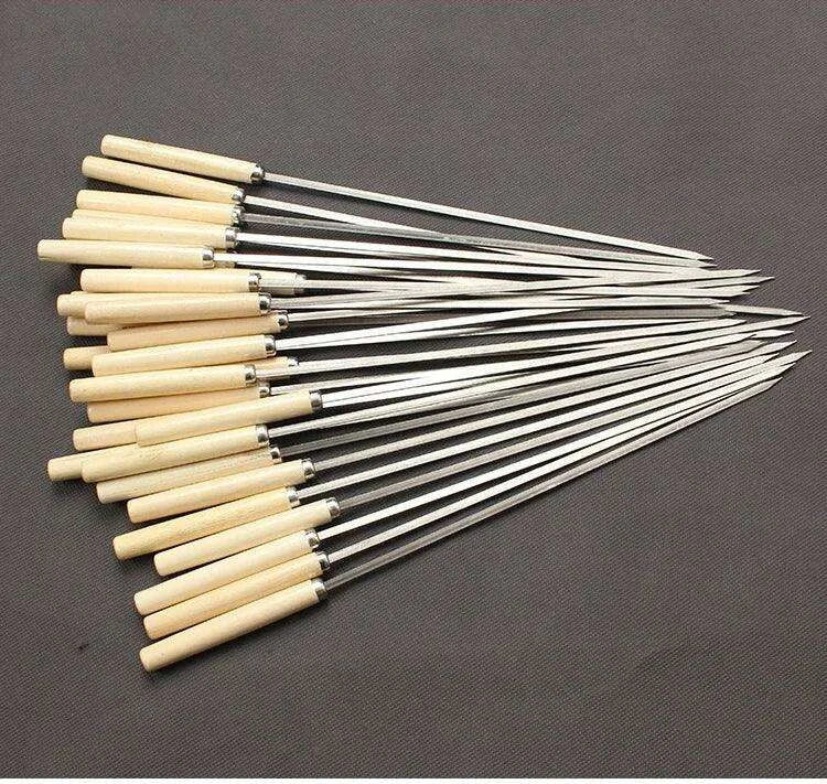 • Wooden Handle: Each skewer is equipped with a comfortable wooden grip that not only enhances handling but also protects your hands from heat.