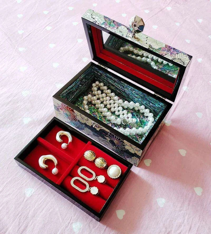 • High-Quality Materials: Constructed from premium mother-of-pearl, our jewelry boxes undergo approximately 19 detailed treatments, guaranteeing exceptional quality and durability.