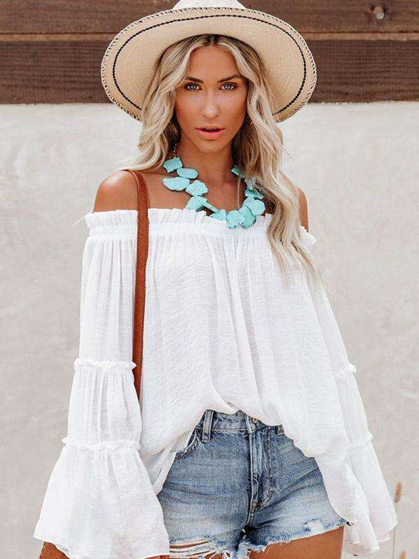 Chic Asymmetrical Blouse with Fashionable Flared Sleeves