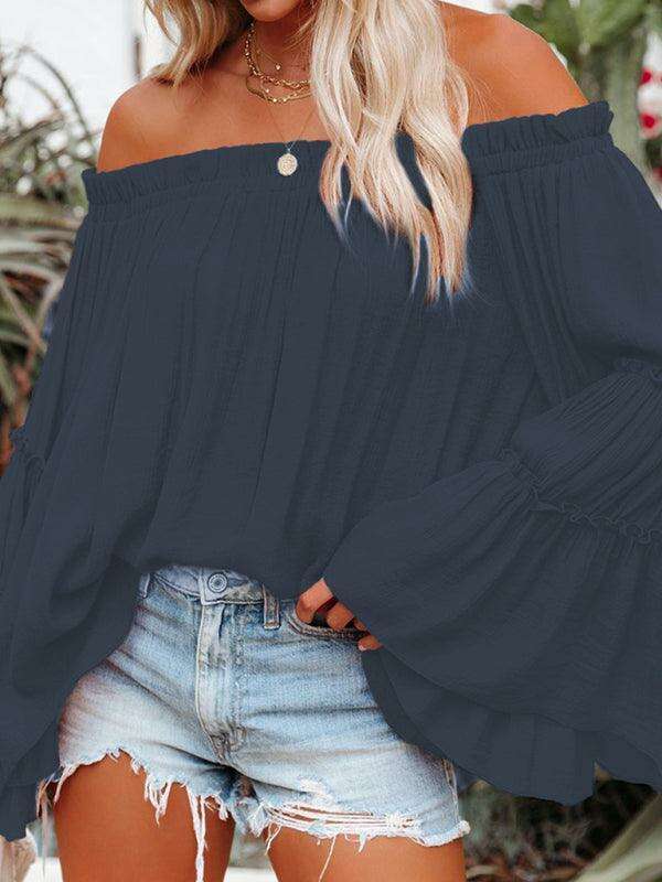 Chic Asymmetrical Blouse with Fashionable Flared Sleeves