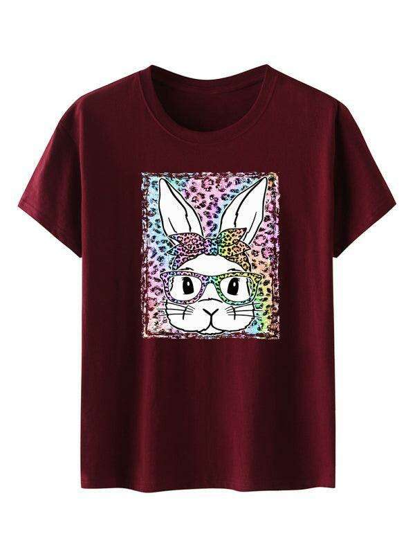 Stylish Leopard and Bunny Print Short Sleeve Tee for Effortless Chic
