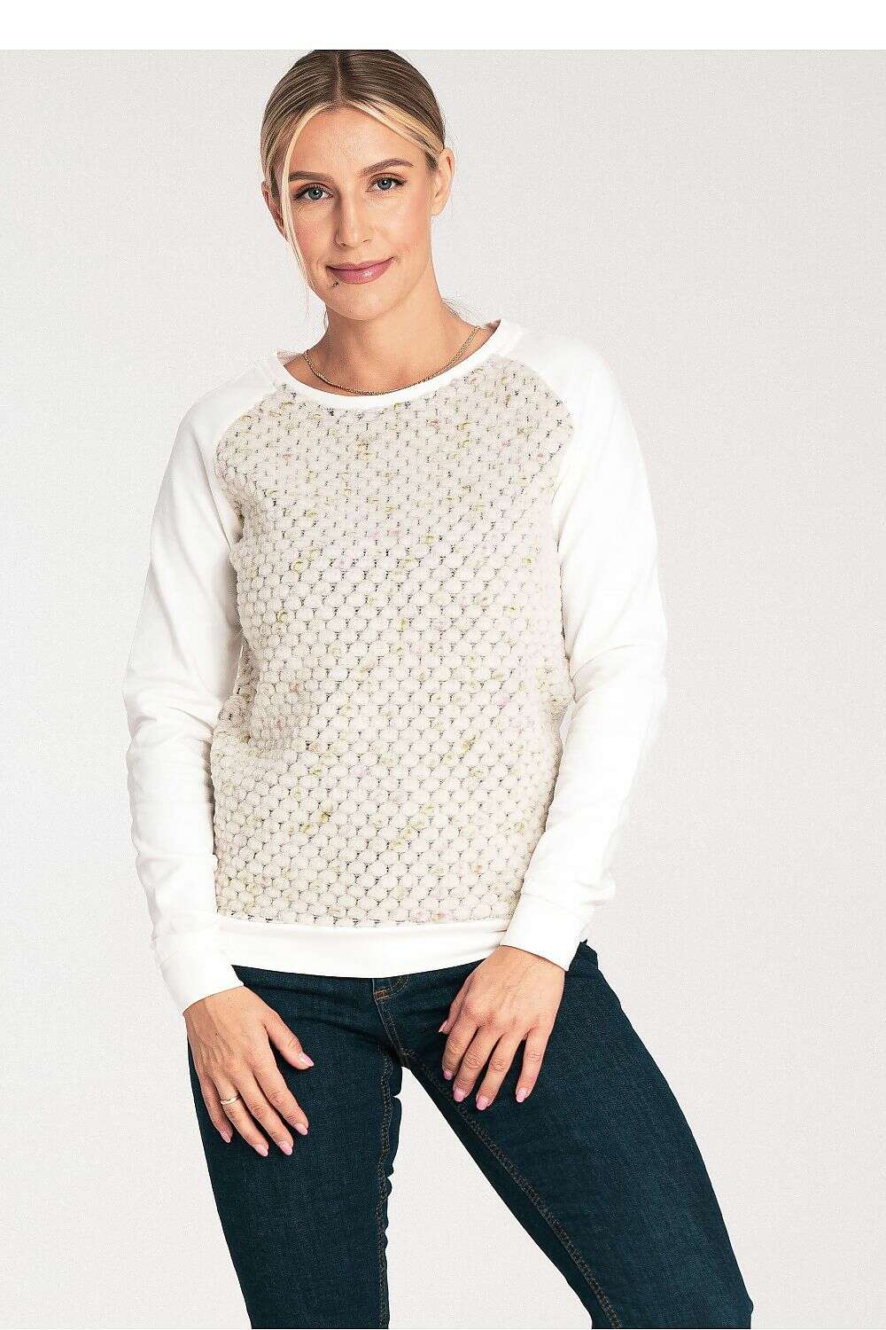 Simple cotton blouse with long sleeves and a round neckline. In the front a wool effect insert.