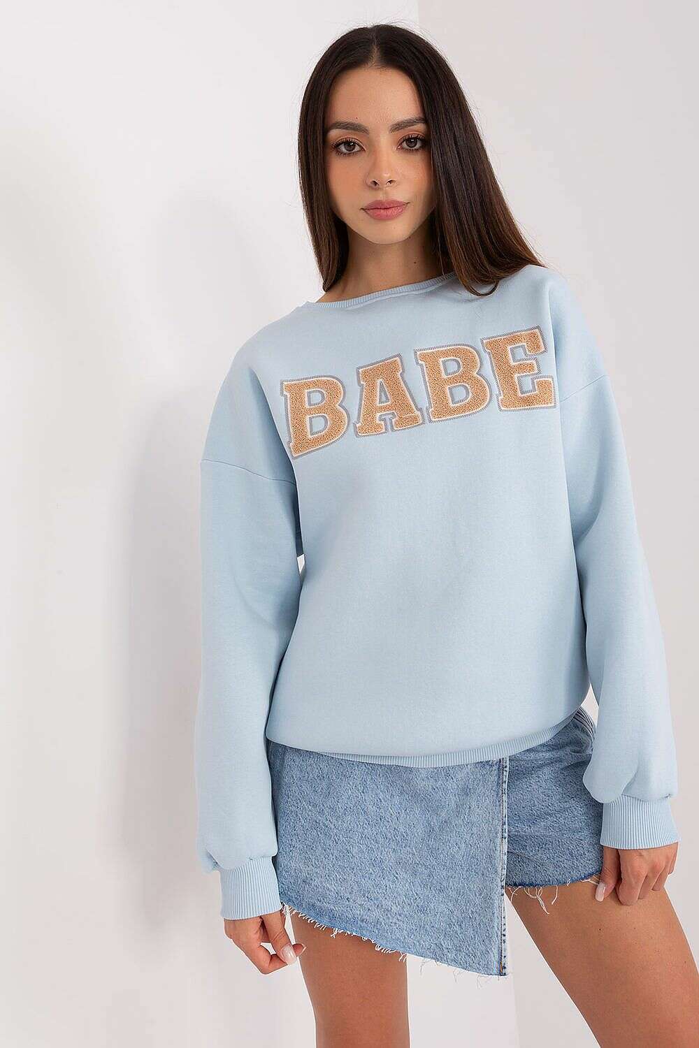 Women's sweatshirt put on over the head is the perfect choice for lovers of casual style. It stands out with a dominant pattern and a front inscription that gives it a unique character. The varied texture of the material adds an interesting, modern look. The sweatshirt made of a combination of cotton and polyester ensures comfort and durability. The standard length and long sleeves make it perfect for everyday wear. The round neckline emphasizes the classic, universal cut, suitable for any styling.
