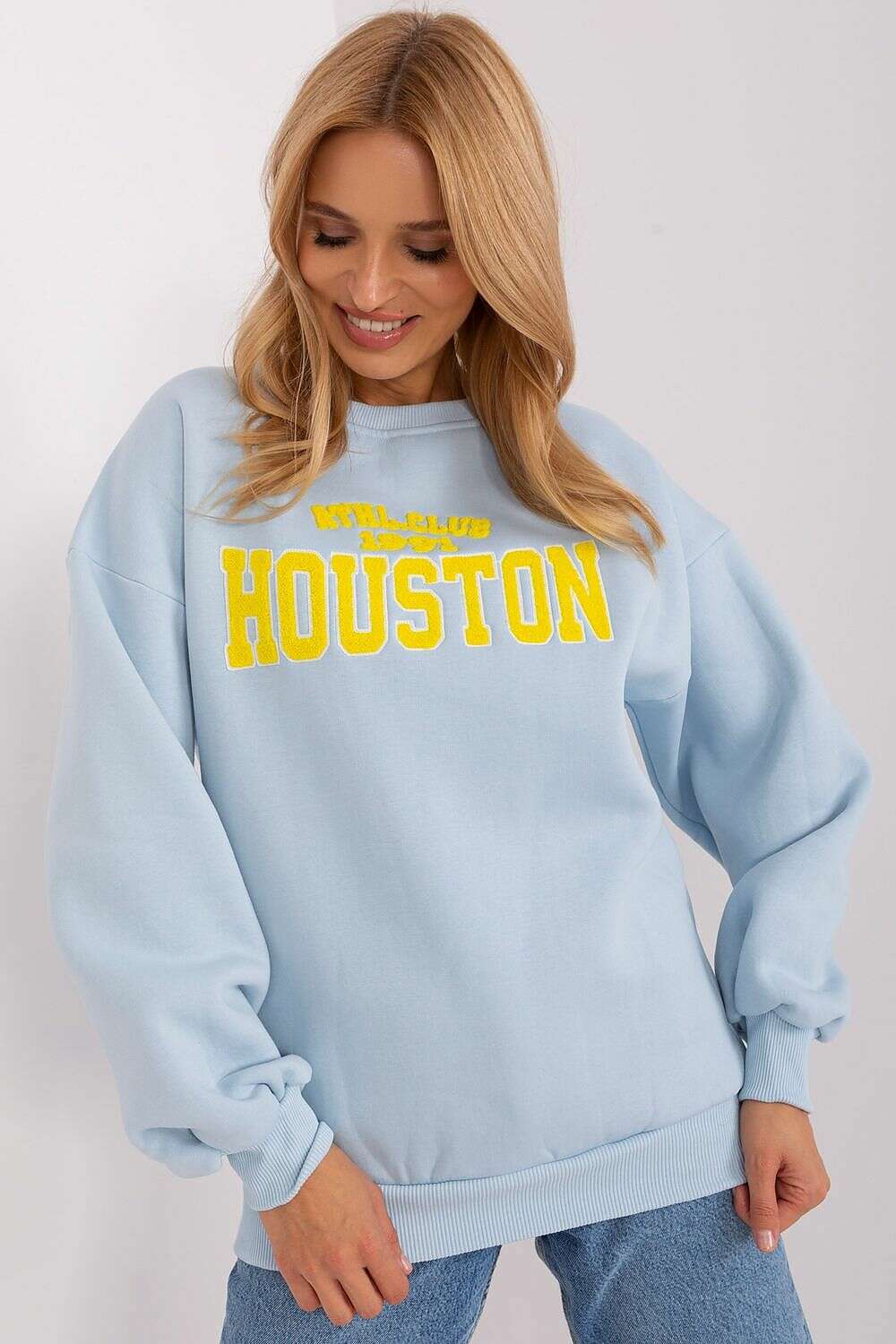 Women's sweatshirt pulled over the head is a combination of casual and sporty style, perfect for everyday occasions. Its dominant pattern with a slogan on the front gives it a modern and dynamic character. Made of a soft blend of cotton and polyester, it guarantees comfort and durability. Standard length and long sleeves make it a versatile choice for everyday wear. The round neckline provides a classic look, and the inner lining makes the sweatshirt perfect for cooler days, offering thermal comfort and stylish appearance at the same time.