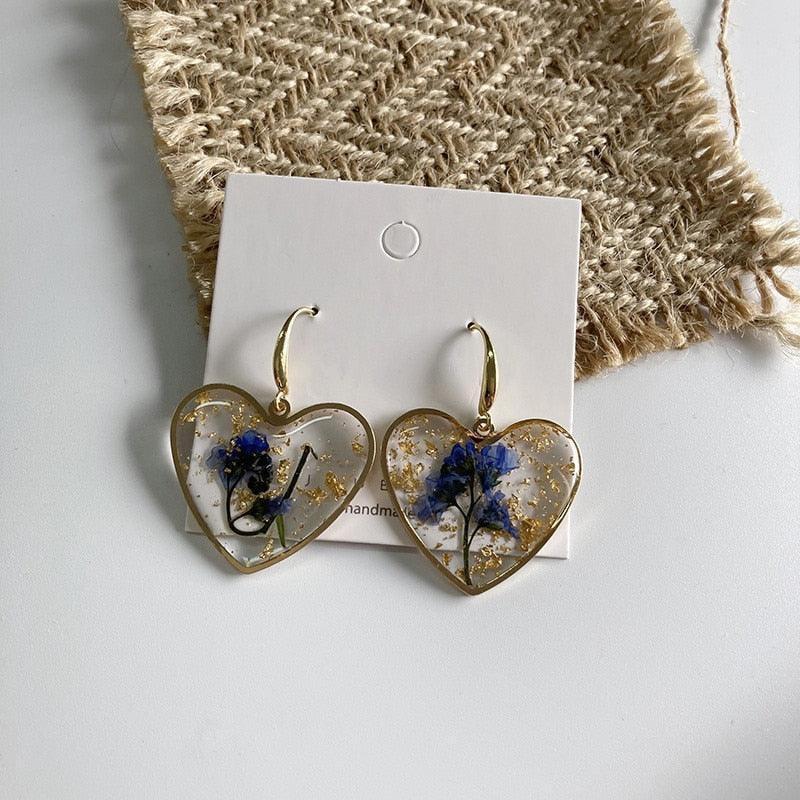 Timeless Forget-Me-Not Heart-Shaped Resin Earrings - Meaningful Gift for Graduations & Romantic Occasions