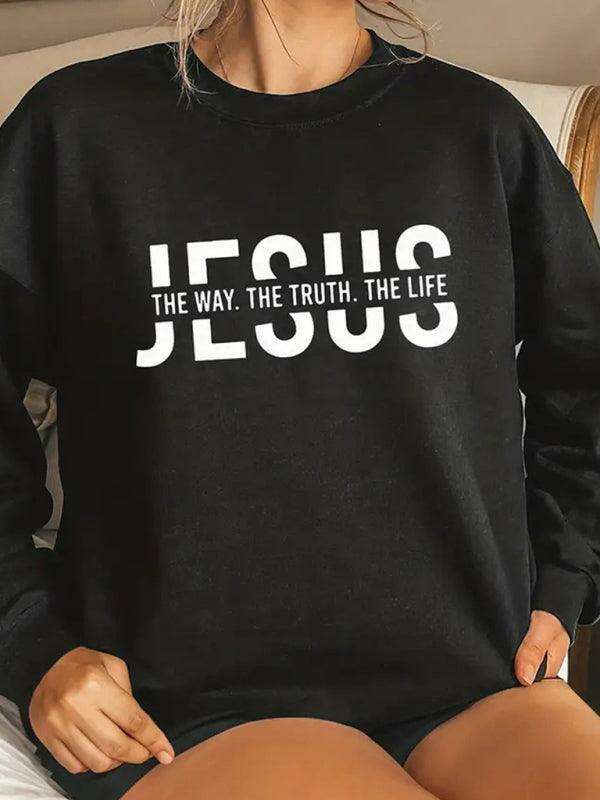 Trendy Women's Stretchy Letter Graphic Sweatshirt for Effortless Chic Style