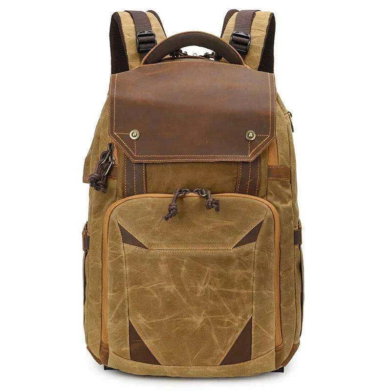 - Waterproof Retro Design: Crafted from premium batik canvas and leather, this backpack offers a unique aesthetic while providing waterproof protection for your valuable equipment.