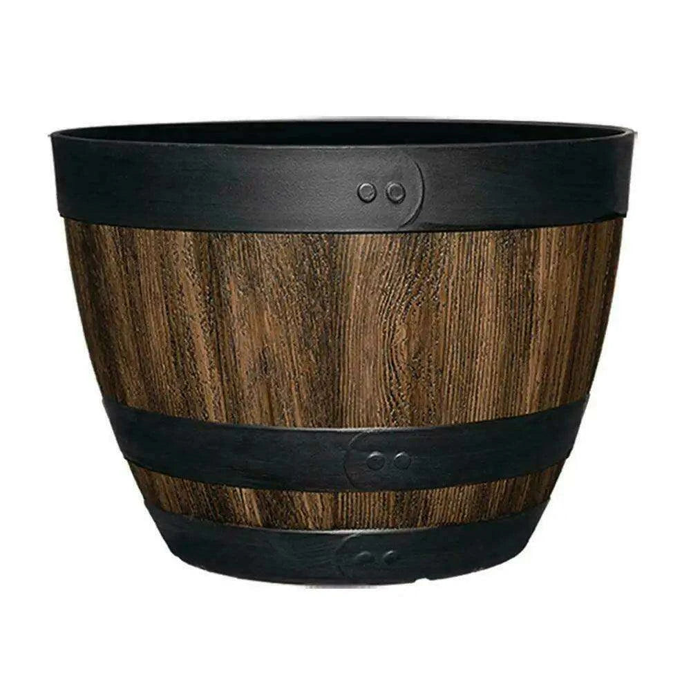 Vintage Charm 16-Inch Durable Resin Barrel Planter for Your Garden Oasis..